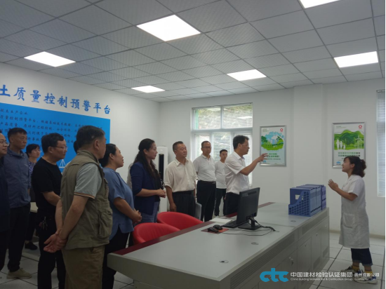 2021年9月13日下午,貴州省副省長、省政府黨組成員郭錫文一行蒞臨國檢集團貴州公司視察指導(dǎo)工作。貴州省建筑材料科學研究設(shè)計院有限責任公司黨委書記、董事長兼總經(jīng)理賀勇、國檢集團貴州公司總經(jīng)理張桂紅、副總經(jīng)理李繼超、總顧問帥頌憲、總經(jīng)理助理朱若君陪同參觀。
