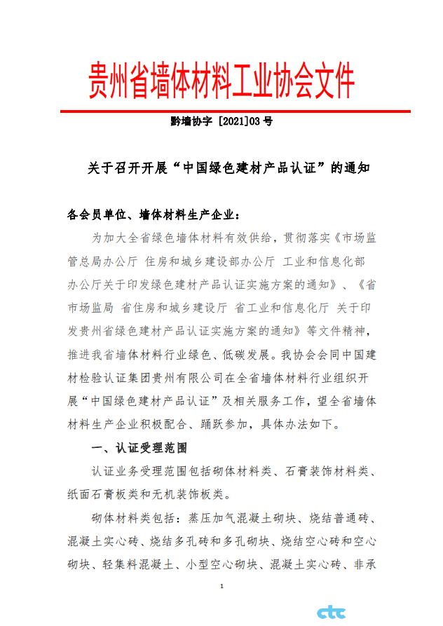 我公司與貴州省墻體材料工業協會開展“中國綠色建材產品認證”相關工作