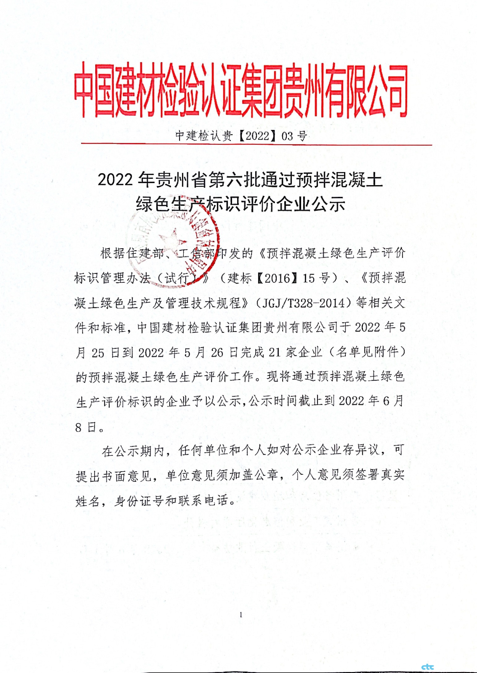2022年貴州省第六批通過預(yù)拌混凝土綠色生產(chǎn)標(biāo)識(shí)評(píng)價(jià)企業(yè)公示